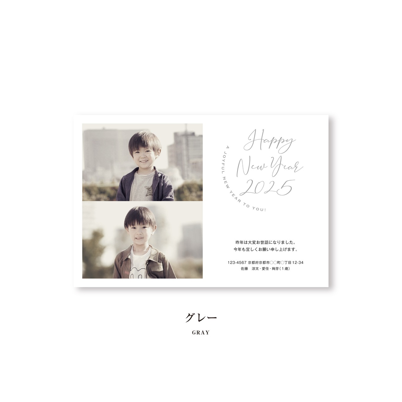 2025年の干支「巳」を敢えて使用せず、シンプルでおしゃれなオリジナル年賀状を多種ご用意いたしました。